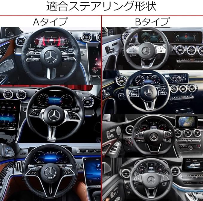 【適合】≪Aタイプ≫ Aクラス W177 2023- 後期モデル、Bクラス W247 2023- 後期モデル、Cクラス W206 S206、Eクラス W214 S214 / W213 S213 C238 後期モデル、Sクラス W223、Gクラス W465、GLA H247 2023- 後期モデル、GLB X247 2023- 後期モデル、GLC X254 C254、CLA C118 X118 2023- 後期モデル、CLS C257 後期モデル、EQA H243、EQE V295 X294、EQS V297 X296 >※上記車両でも年式やグレードによって適合できない場合がございます。画像内適合ステアリング形状を必ずご確認ください。