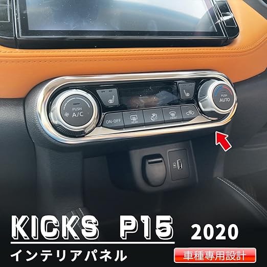 oi-trading 日産 キックス KICKS e-POWER P15型 2020年6月~ エアコンスイッチパネル エアコン操作パネル メッキ ガーニッシュ 【素材】SUS304ステンレス 鏡面仕上げ ドレスアップ アクセサリー カスタム パーツ 内装 1P 5041 | oioioichan