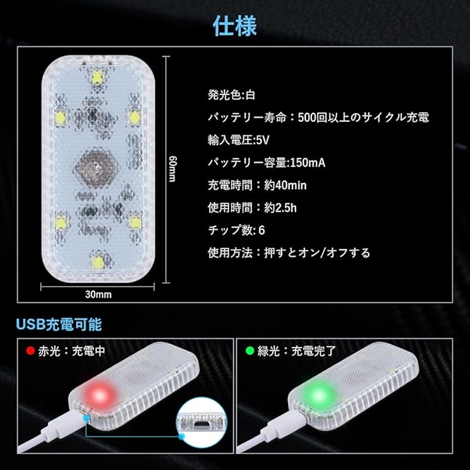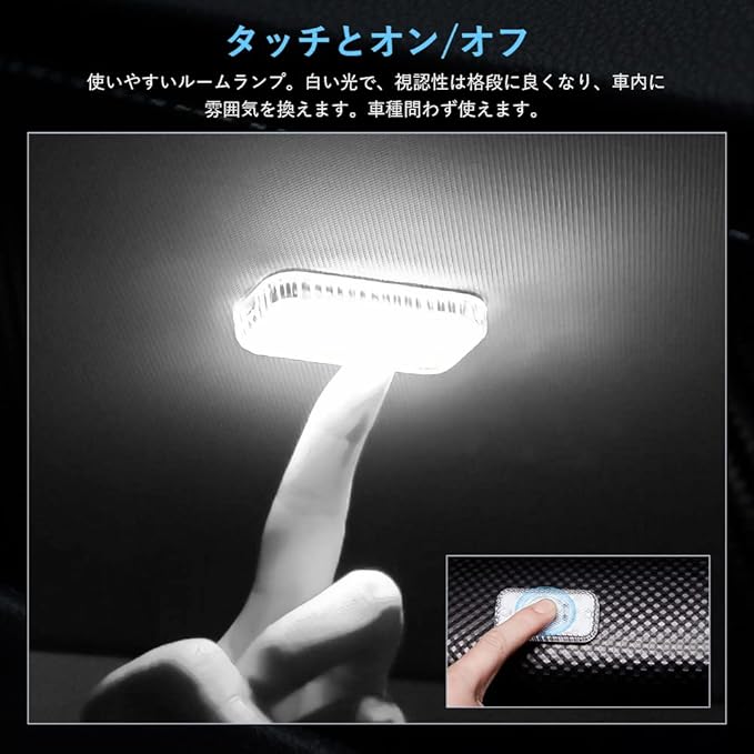 FUTWOD LED ルームランプ ホワイト 白 6000K タッチライト ナイトライト 室内灯 車内灯 USB 充電 マグネット タッチ式 配線不要 LEDライト ルーム 電球 車 玄関 寝室 階段 汎用 小型 2個入り | oioioichan