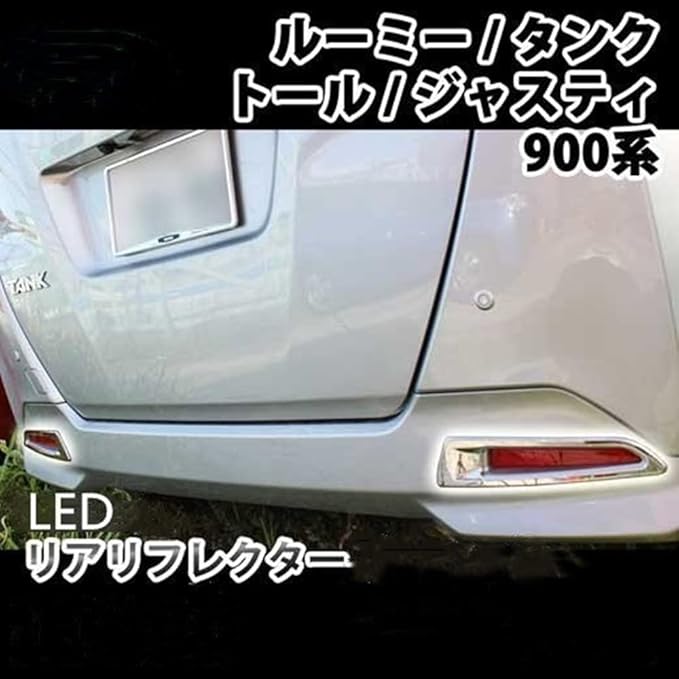 【適合車種】 ◆車 種 : タンク・ルーミー・ジャスティ・トール ◆型 式 :M900A M910A ◆年 式 : H28.11~ ◆その他 : .車・ハイブリッド車共通 セット内容 リフレクターLED*2PCS 仕様 ■通常光る事の無いリフレクターのLED化で目立ち度抜群! ■LEDの光で後続車からの視認性を上げ安全性向上に効果を発揮します。 ■ドレスアップとしてもお薦めです。 ■スモール時30%発光、ブレーキ時100%発光のダブルアクション! ■追突防止やアピール、後方車両からも目立つ魅力的な商品です。 ■仕様■ ~12V専用~ ■リア用LEDリフレクター(左右セット) ■レンズカラー : 赤 ■配線 : 黒:アース 白:スモール、赤:ブレーキ ■配線の長さ : 約100cm LEDリフレクーミー・タンク・ジャスティ・トール