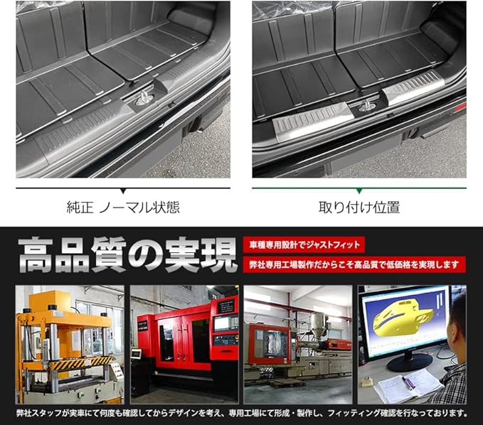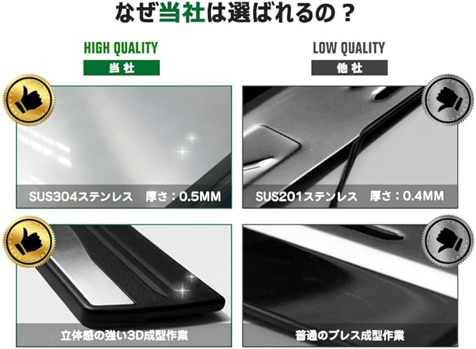 錆や腐食に強いSUS304ス傷付きやすいリアバンパーへの保護機能性とドレスアップ両立します!テンレス製、光沢や耐久性抜群。