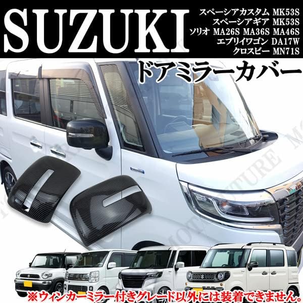 スペーシアカスタム MK53S/スペーシアギア MK53S/ソリオ MA26S MA36S MA46S/エブリイワゴン DA17W ドアミラーカバー カーボンデザイン 貼り付けドレスアップ ABS製 左右セット。