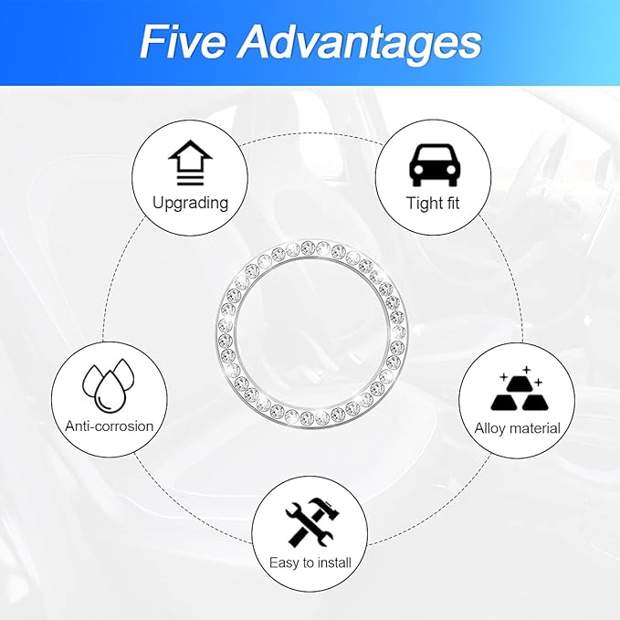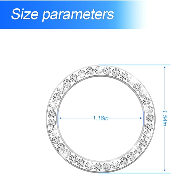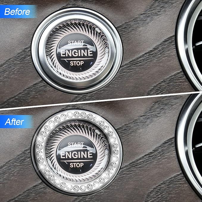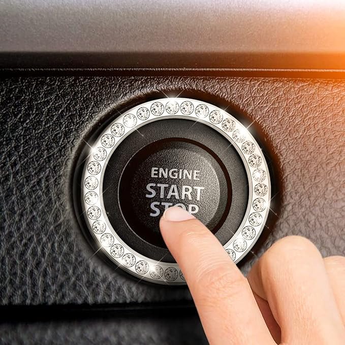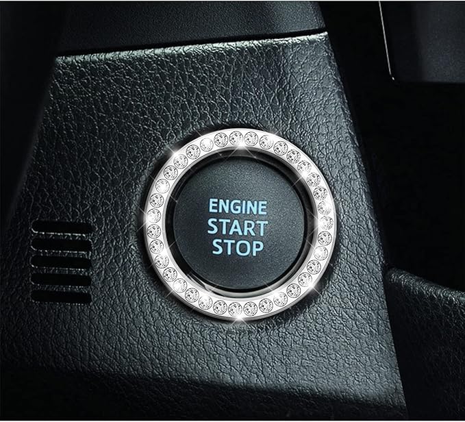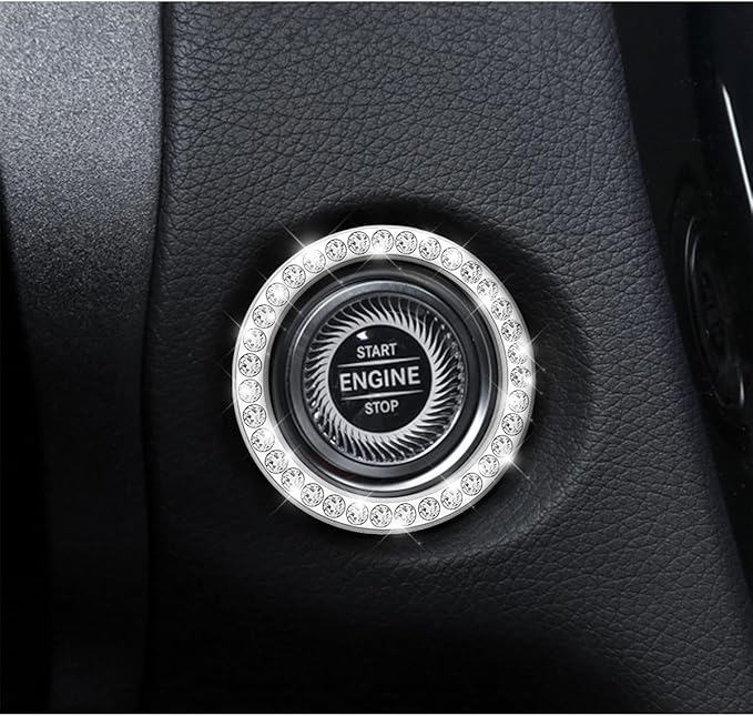クリスタルラインストーンカーエンジンスタートストップ装飾リング、女性用キラキラカーアクセサリー、プッシュトゥスタートボタン、キーイグニッションスターター&ノブブリングリング2個(ホワイト/シングルリング) | oioioichan