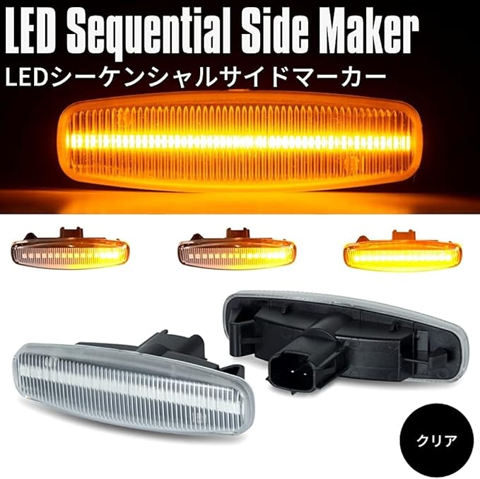 日産車 汎用 シーケンシャル LEDサイドマーカー クリアレンズ