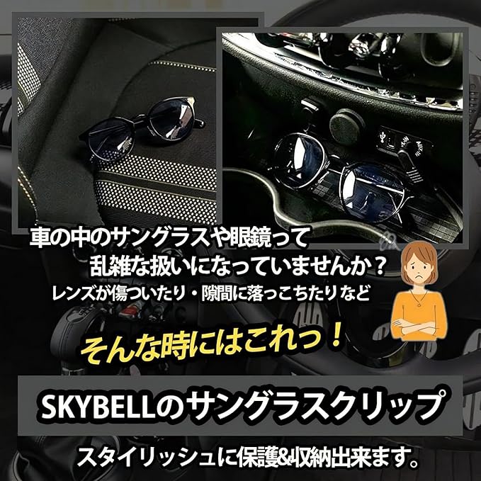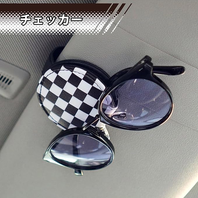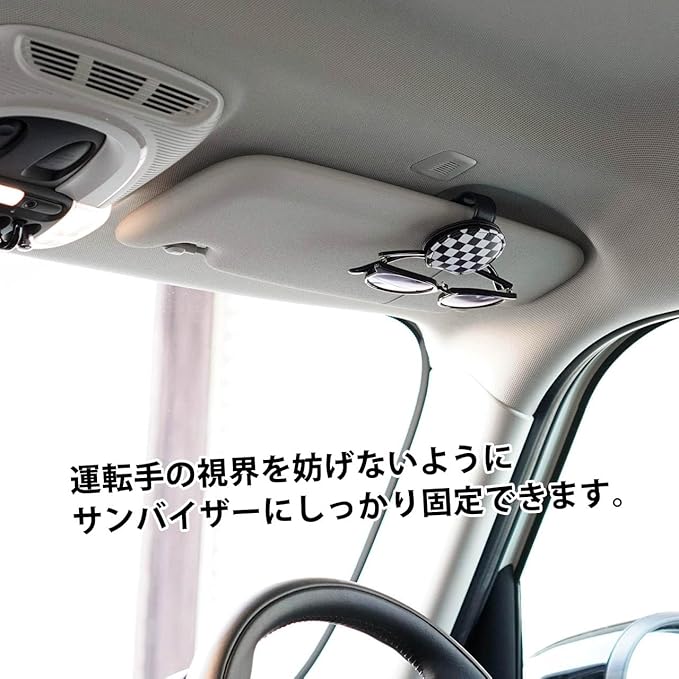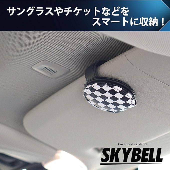 スカイベル(SKYBELL) サングラス ホルダー クリップ 車 マグネット ミニクーパー bmw mini 対応 アクセサリー サンバイザー 眼鏡 便利グッズ (チェッカー) | oioioichan