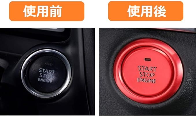 SHANGRI-LA マツダ3 Mazda3 CX-30 アルミ製 エンジン スタート ボタン カバー リング 2点セット 両面テープ付き 文字透過 内装 装飾 アクセサリー 社外品 (レッド) | oioioichan