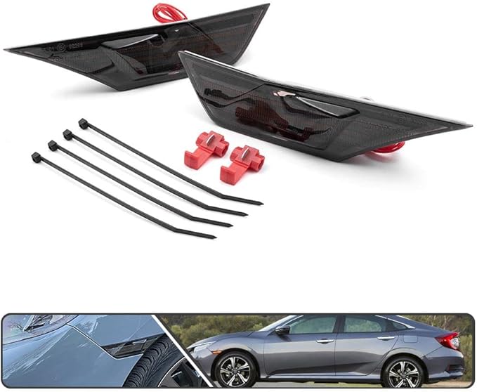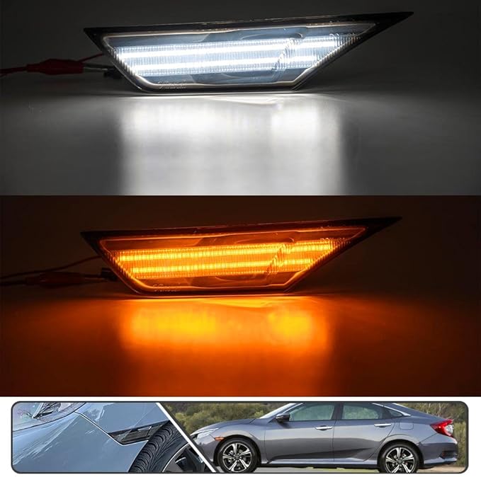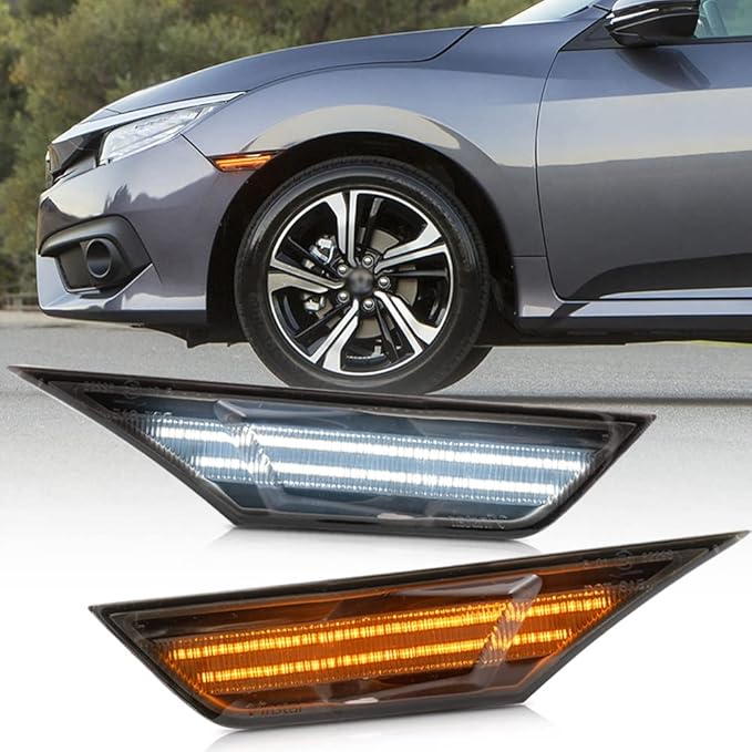 JDM フルホワイト/アンバー LED サイドマーカーライト 2016年以降 Hon'da シビック セダン/クーペ/ハッチバック アンバー LED サイドマーカー ライト ホワイト LED ランニング/ポジションランプ スモークレンズ 交換用 OEM#H02551127N | oioioichan