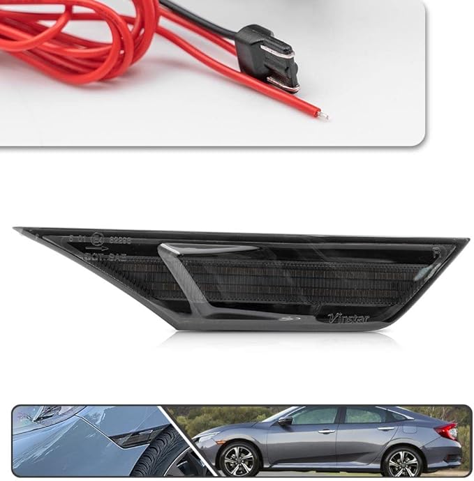 適合車種:スモークレンズフロントサイドマーカーランプ 2016年以降のHon'da Civic 2ドア、4ドア、ハッチバック、OEMドライバー助手席サイドマーカーV134L-B3BGZ V134R-B3BGZ 34300-TET-H01 34350-TET-H01