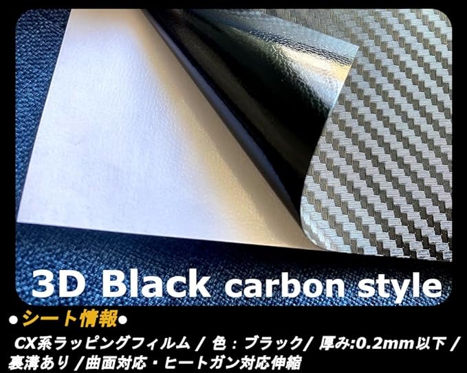 おうとつ感あり、薄手の3Dブラックカーボン調採用!傷隠し、劣化防止!