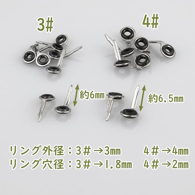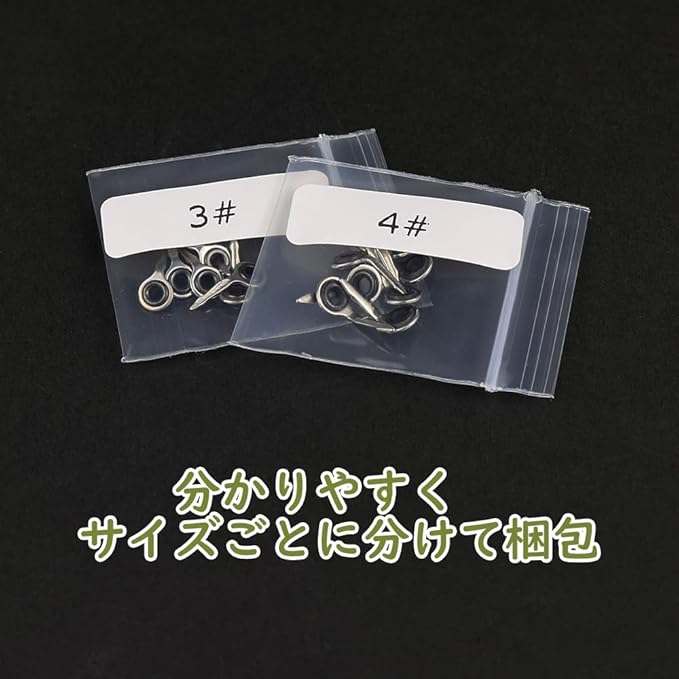 リング内径 3#:約1.8mm / 4#:約2.0mm /5#:約2.9mm / 6#:約3.8mm / 7#:約4.5mm / 8#:約5mm (生産ロットにより、小さいな誤差が生じる場合があります、どうぞご了承ください。)