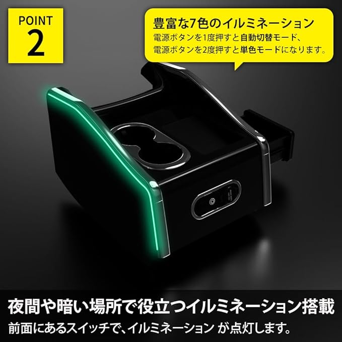 ★RGB7色切替LED付きで、車内を煌びやかに演出します。