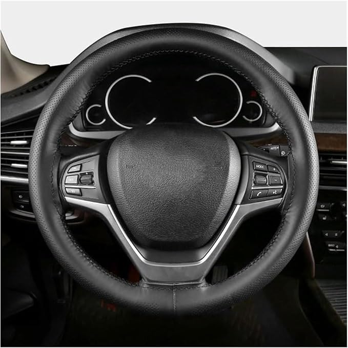 本物の牛革製自動車用ステアリングホイールカバー 編み込み 38cm 15インチ 手縫い ソフト 滑り止め 本革製自動車用ステアリングホイールケース。