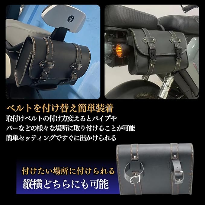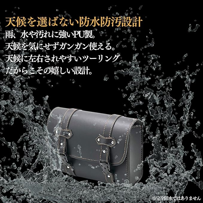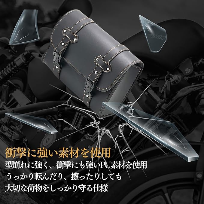 バイク、オートバイ用サイドバックです。PUレザーを使用した見た目もよいスタイリッシュな仕上がりとなっております。