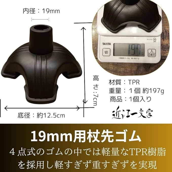 ✅商品仕様:対応杖の内径19mm 高さ7cm 横幅約12.5cm 重量約197g 材質TPRゴム 簡易包装 理学療法士監修