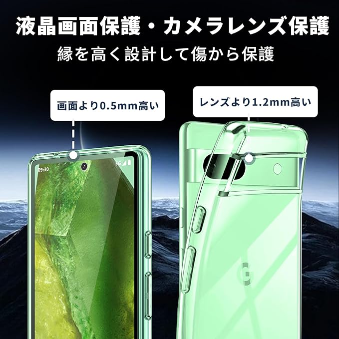 【液晶画面保護・カメラレンズ保護】携帯電話の曲線に従って高低差設計です。柔軟性が強いので、手の中にしっくりと収まり、滑りにくいので片手操作がしやすいことも良いです。なお、液晶画面は0.5mmの段差を設け、カメラレンズより1.2mmほど高め、平らな場所に置いても直接触れることなく、大切なPixel 8a を守り、傷付くご心配には及びません。