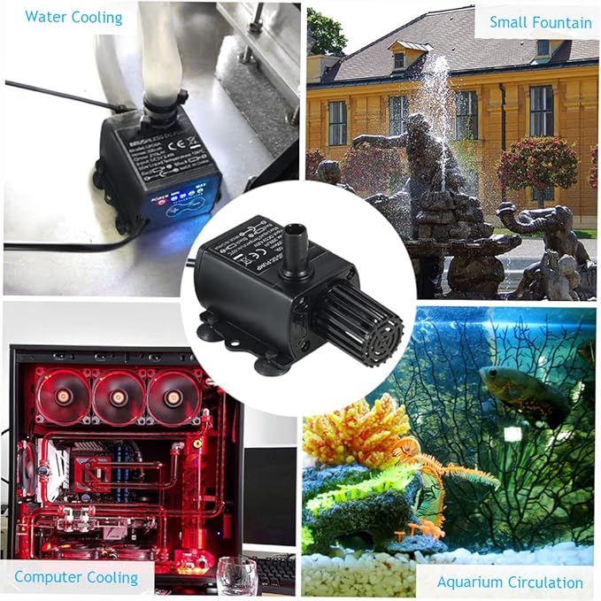 小型、高効率、低ノイズです。底に4つのゴムの吸盤は、滑らかな表面に吸着し、騒音と振動を減らすことができます。水槽、噴水、車の冷却、コンピュータの水冷却システムおよび循環システムに適しています。