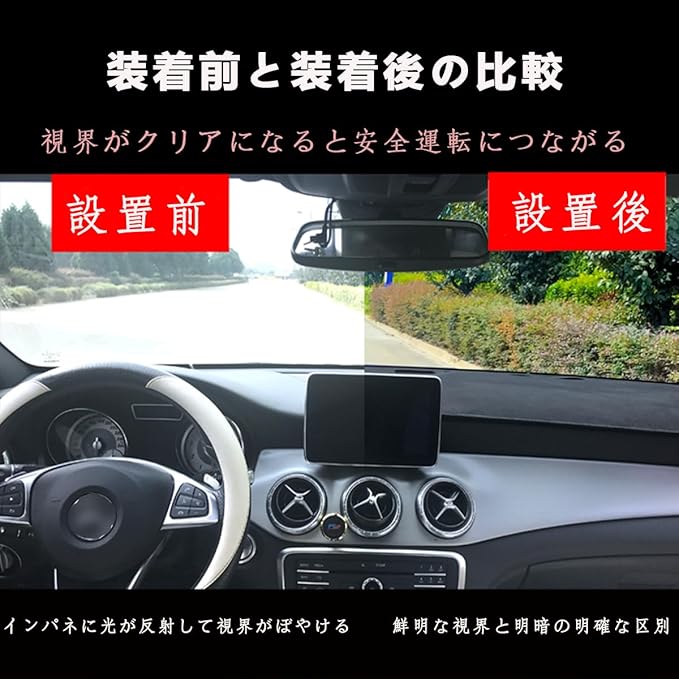 【ダッシュボードを保護する】ダッシュボードは、長時間日光にさらされると、変色、ひび割れ、または光沢の損失が発生しやすくなります。ダッシュマットは、これらの問題の発生を軽減し、ダッシュボードの新品の状態を維持するのに役立ちます。