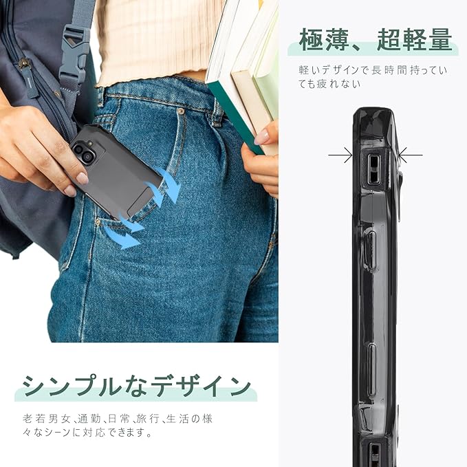 【プレミアム感と正確な穴位置】ソフト柔らかくて手触りも滑らかなのが特徴です。触り心地が良く、今までにない、なめらかな触り心地を実現。本体とピッタリ密着して違和感がなし一体感がすごく格好いいです。スマホ本体に脱着しやすく、手で持った時のグリップ感も良いので、落としてしまう確率もハードタイプより低くなります。滑り止めのハンドストラップを装備し、携帯電話のセキュリティをさらに強化