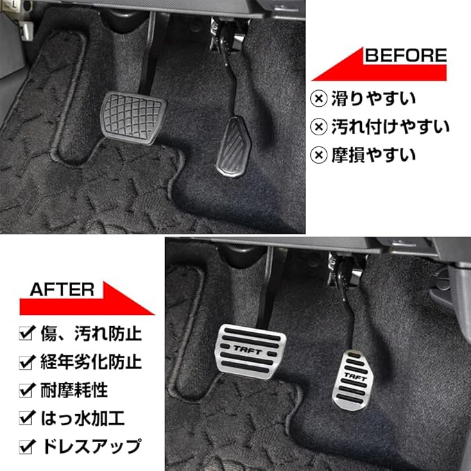 XIKER ダイハツ タフト LA900S LA910S 専用 アルミ ペダルカバー 取り付け簡単 ブレーキ 穴あけは不要 純正交換設計 アクセル 被せるカバー 内装カスタム 滑り止め 防キズ 防汚れ パーツ 2点セット 【シルバー】 | oioioichan