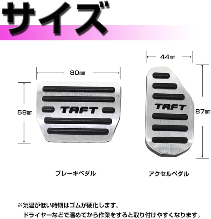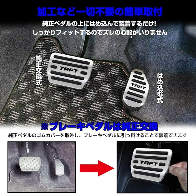 【取付簡単】面倒な穴あけ作業やビス止め作業が不要!!純正ペダルにかぶせるだけのワンタッチ装着!!時間もかからないし、どなたでも簡単に装着できます!!※気温が低い時期はゴムが硬化します。ドライヤーなどで温めてから作業をすると取り付けやすくなります。