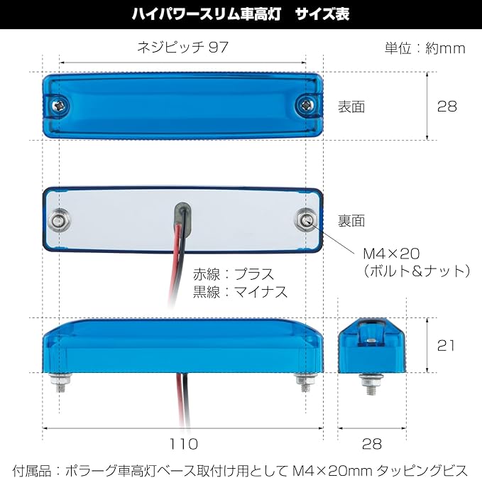 材質:レンズ/PC、台座/ABS・メッキ、ボルト・ナット/ステンレス、パッキン/シリコン