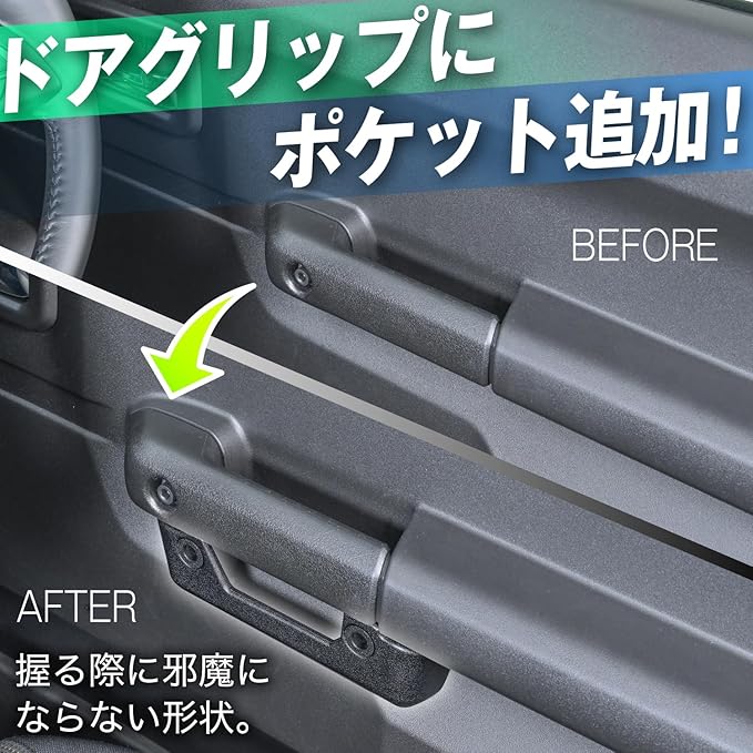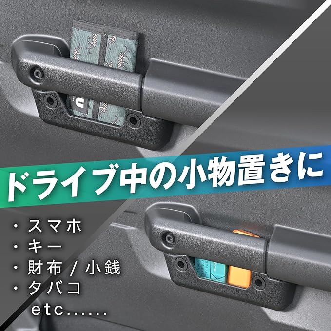 スズキ ジムニー&シエラ&ノマド(JB64/JB74/JC74)のドアハンドル下に取り付けることで、収納を増やすことができるドアポケットです。