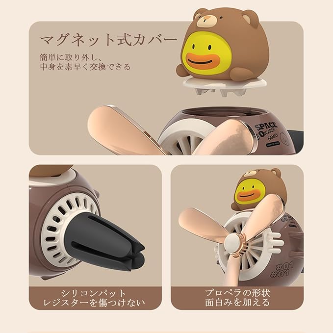 Bontand車用 芳香剤 DONOアヒルパイロット プロペラディフューザー クリップ式 除菌 消臭 エアコン取り付け型 固形香料 プレゼント/ギフト/車装飾/カー用品 (ブラック) | oioioichan
