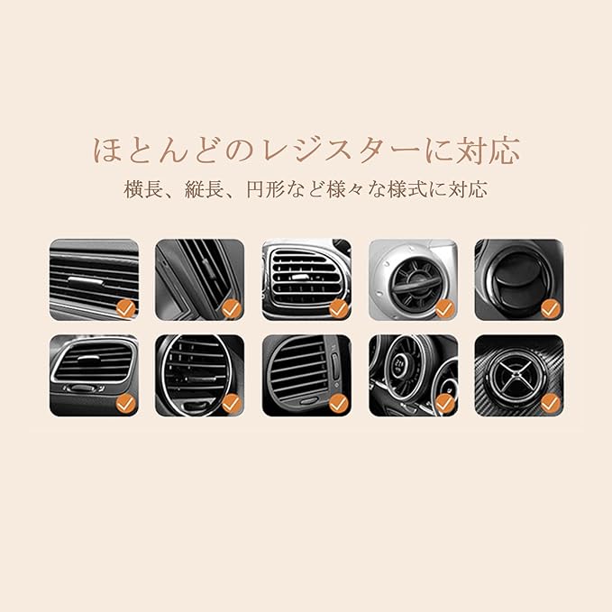【ほとんどの車に取り付け可能】本製品はクリップタイプの車用芳香剤で、車のエアコン吹き出し口に取り付けて使用します。クリップは横型、縦型、円型など、様々なカーエアコンの吹き出し口に対応しています。市販のほとんどの車に取り付け可能で、インストールも簡単です。