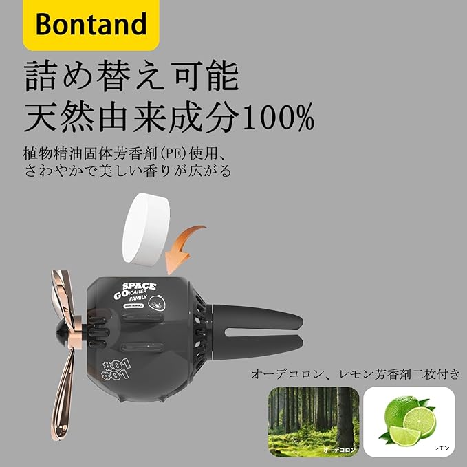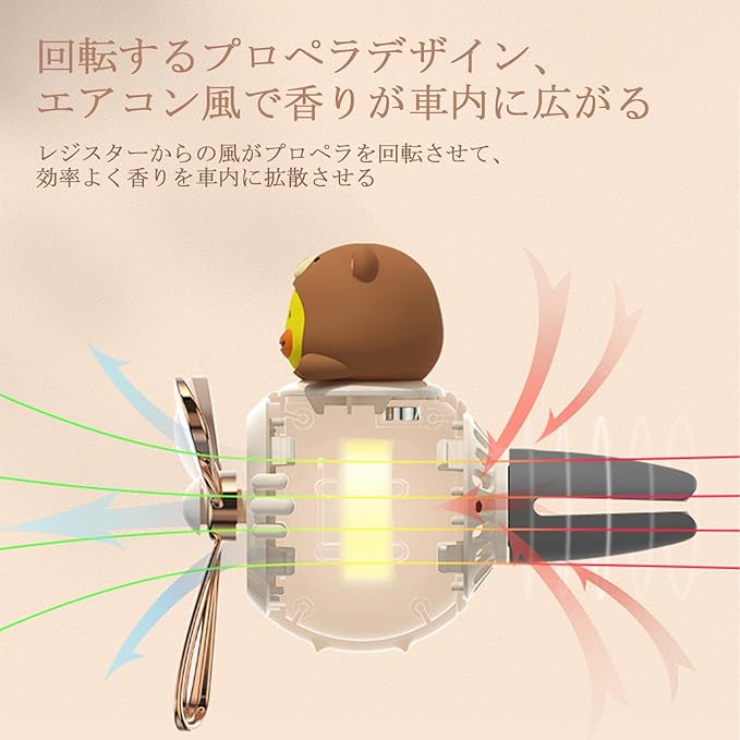 【新車購入者、喫煙者向け】プロペラが回り、香りを車の隅々まで拡散させます。空気を浄化し、新車を購入したばかりの時の匂いや長時間の喫煙により、車に残った匂いなどを消すことができます。