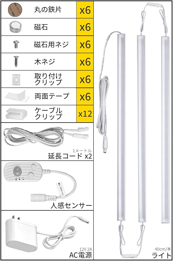 Monoc 人感センサーライト 室内 コンセント【分離型 消灯時間設定】明るい LED バーライト 連結可能 40cm 無段階調光 薄型 マグネット付き 工事不要 玄関/クローゼット/キッチン/トイレ/階段 (昼光色/6000K) | oioioichan