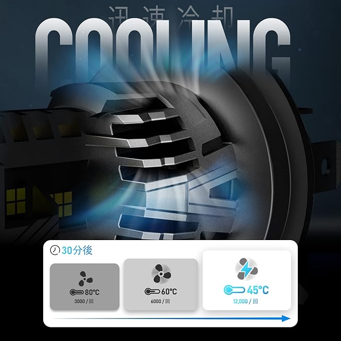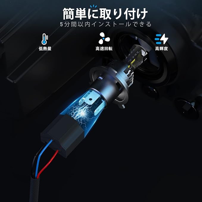 【優れた放熱性能&防水性能】ledヘッドライト h4製品がいかに明るく長時間点灯できます。本製品は航空機素材であるアルミニウムと黄銅合金製なので、放熱面積を広く取ることで放熱効率をより一層アップさせます。更に、高性能ファンも搭載し、迅速的に熱を発散でき、使用寿命も長くします。防水レベルはIP68に達して、短時間の浸水では全く影響は受けません。雨や雪での走行も安全、快適をします!