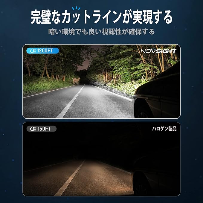 【光軸調整済み&完璧な配光】NOVSIGHT LED h4製品は1:1ハロゲン球を完璧に再現、ハロゲン球と同位置での発光を実現していますので、光軸調整は不要です。ハロゲンの照射原理を全く参考して、配光自体は非常にクッキリとした綺麗なカットラインが出ており対向車等周りにも迷惑な眩しさが無くて、完全に純正ハロゲンを再現することに成功しました。HIDとは比較にならないほどの稼働速度が実現し、一瞬に迅速点灯できます。