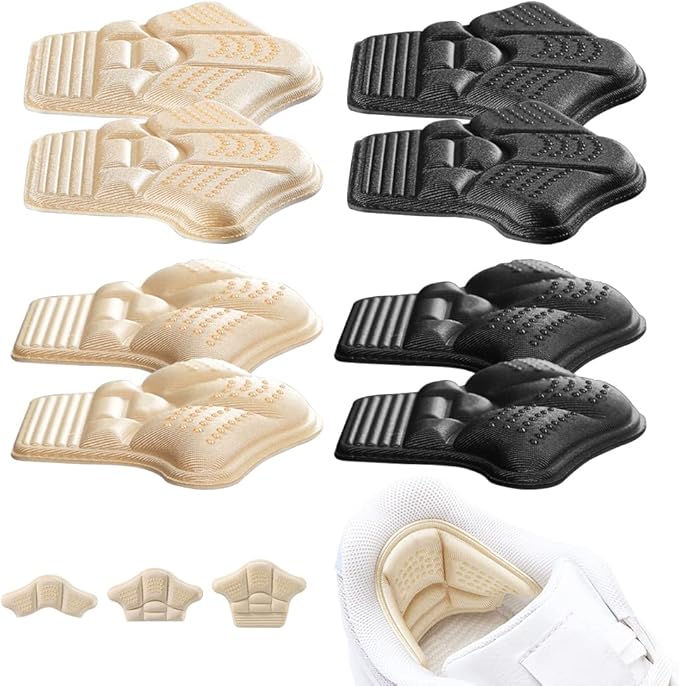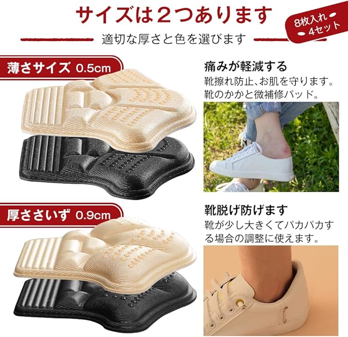 靴擦れ防止 かかとパッド 4足8枚セット 靴かかと保護パッド パカパカ防止パッド サイズ調整 クッション性 衝撃吸収 滑り止め 脱げ防止 スニーカーに最適 男女兼用(ブラック+ベージュ) | oioioichan