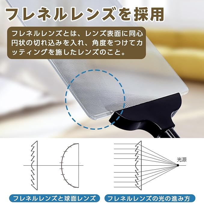 【視野が広い】サイズ約15cmx9cmの枠なしの大型レンズなので、広範囲を見やすく拡大できます。新聞や本をお楽しく読むできて、便利で快適です。