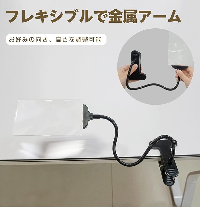 【スタンド式ルーペ】お好みの角度に合わせて自由に曲がるアーム付きスタンドルーペです。両手を解放、プラモデル作り、ネイルのお手入れ、彫刻などの細かい作業に最適です。机などに固定できる便利なクリップ付きで、邪魔にならず使用できます。