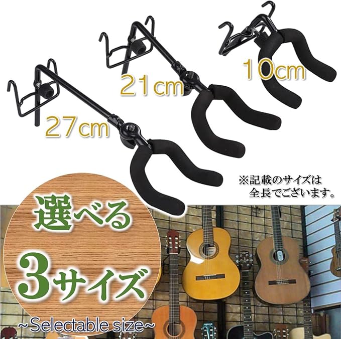 ルボナリエ ギターハンガー ディスプレイ ハンガー ギタースタンド ショート ロング 2個セット フックタイプ (黒 10cm)