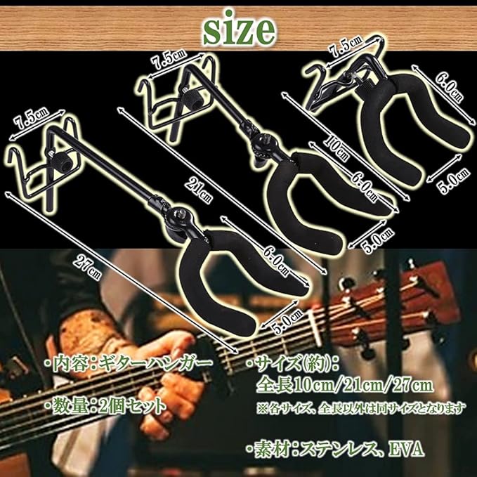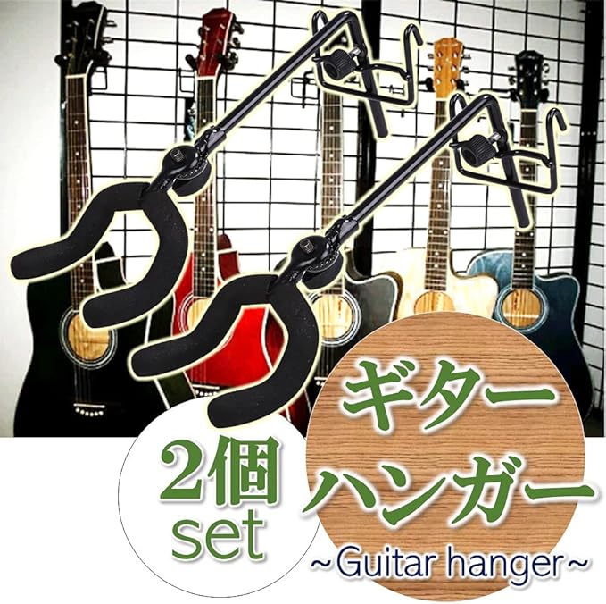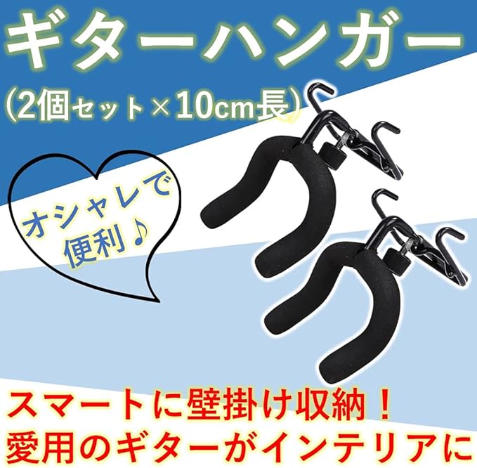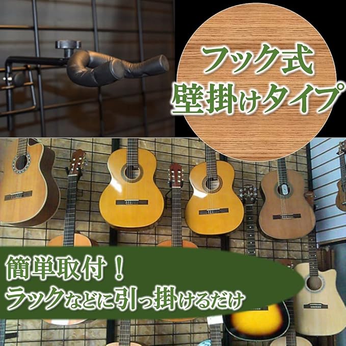 お得な2個セットのフックタイプギターハンガー。愛用のギターをディスプレイしながらスマートに収納できます。シンプルなデザインのホルダーで自慢のギターが引き立ち、部屋のオシャレなインテリアになります。