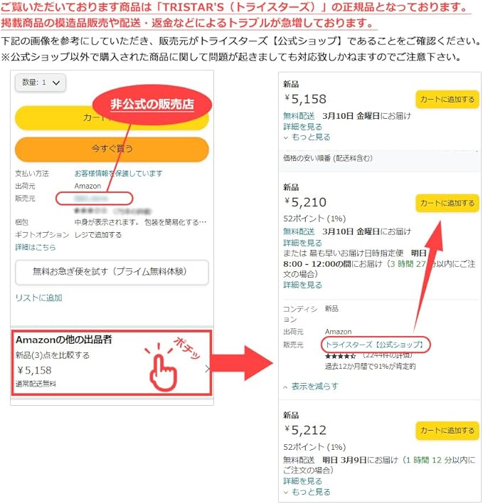 トライスターズの正規品(新品)はが[トライスターズ【公式ショップ】]のみで販売しております。公式ショップ以外でご購入いただいた商品のご返品等の対応は致しかねますのでご注意ください。