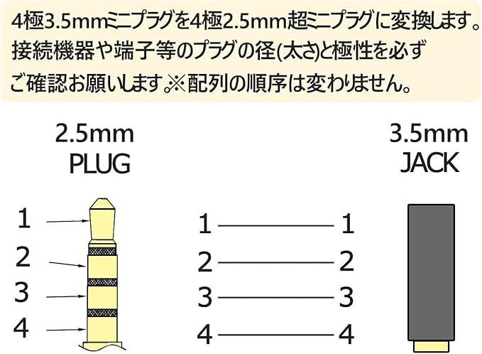 4極3.5mmミニプラグを4極2.5mm超ミニプラグに変換します。2個セット。