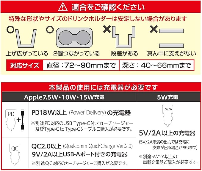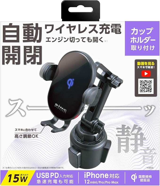 セイワ(SEIWA) 車内用品 スマホホルダー Qi ワイヤレス充電器搭載 ブラック D600 ドリンクホルダー差込取付 USB Power Delivery入力 蓄電用キャパシタ内蔵 静音 最大15W出力 手帳型ケース対応 | oioioichan