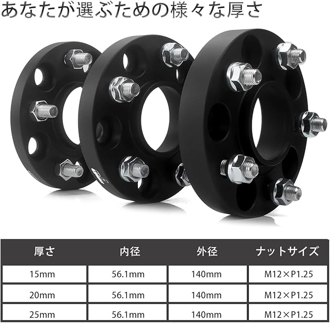 【ボルト&ナット】本製品のボルトとナットには、強度の弱い亜鉛ボルトを使用せずに、高強度のカ一ボンスチ一ル鋼を採用。高い強度で車の足元を支えます。※ナットは専用設計の為、スぺ一サ一の厚みによってナットの長さも異なります。