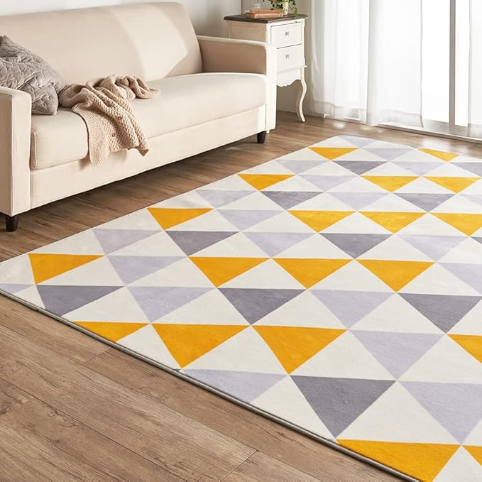 アイリスプラザ フランネルラグ トライアングルイエロー 200 300㎝ 滑り止め付き ラグ 洗える ラグカーペット マット カーペット対応 防ダニ フランネル さらフワ触感 おしゃれ 北欧 じゅうたん | oioioichan