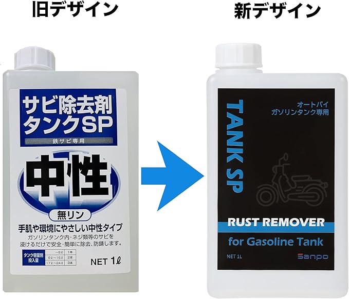 オートバイ・耕運機の.タンク洗浄錆び取り剤