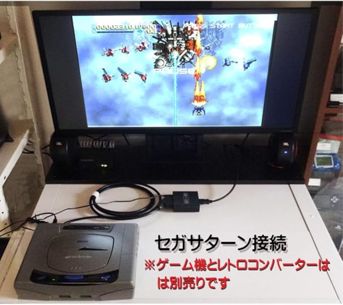 本製品とセガサターンだけではテレビへの出力はできません。3Aカンパニー「レトロコンバーターHD 3A-XRGB-HD」、もしくは電波新聞社「フレームマイスターN P3913547」「XRGB-3 DP3913418」と併せてご利用ください。