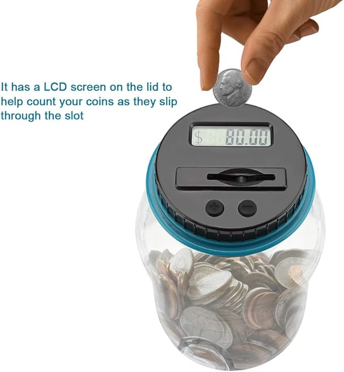 数値表示 - 蓋にはLCDスクリーンがあり、コインがスロットを通り抜ける際にカウントするのに役立ちます。