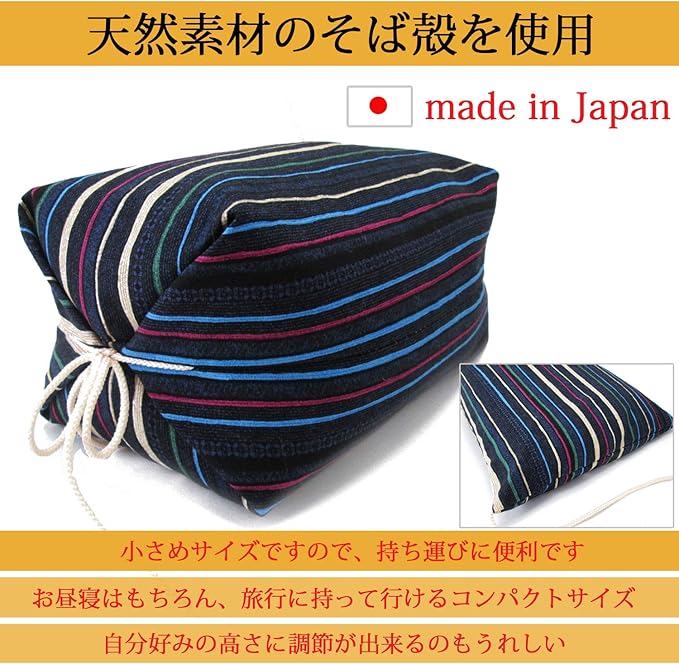 天然素材のそば殻を使用した日本製の枕です。小さめサイズですので、持ち運びにも便利です。お昼寝はもちろん、旅行にも持って行けるコンパクトサイズが嬉しい。自分好みに高さ調節も出来ます。