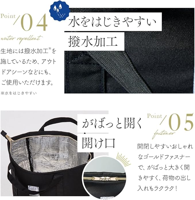【商品仕様】商品サイズ/(約28 47 15cm(持ち手含まず)、材質/表地:ポリエステル100%、断熱材:発泡ポリエチレン、裏地:アルミニウム