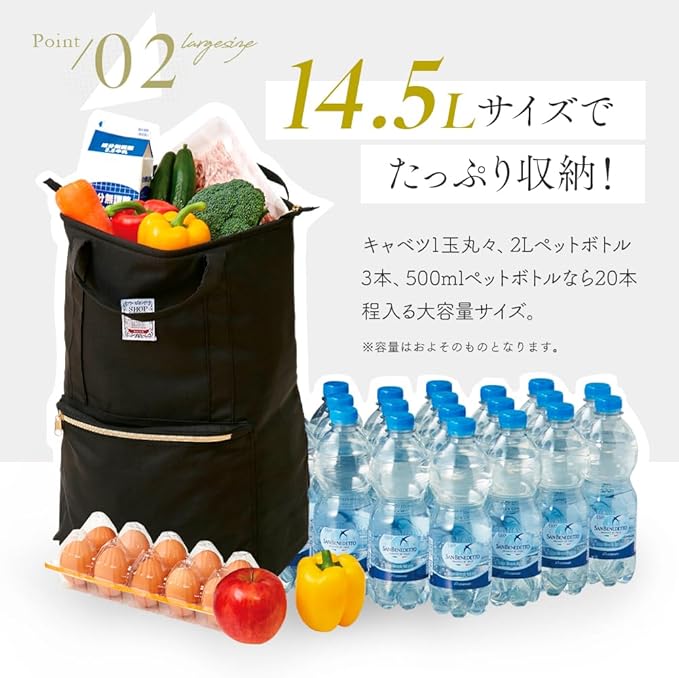 【大容量の収納力】ペットボトルが(2L)が3本も入る収納力! をたっぷり収納できるので、毎日のお買い物の強い味方。スーパーまとめ買いや運動会やピクニックのお弁当も楽々入ります。