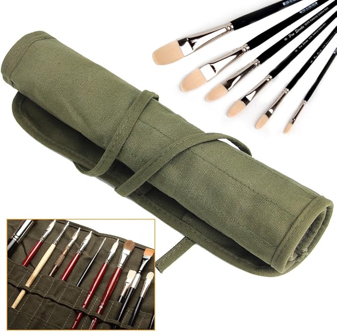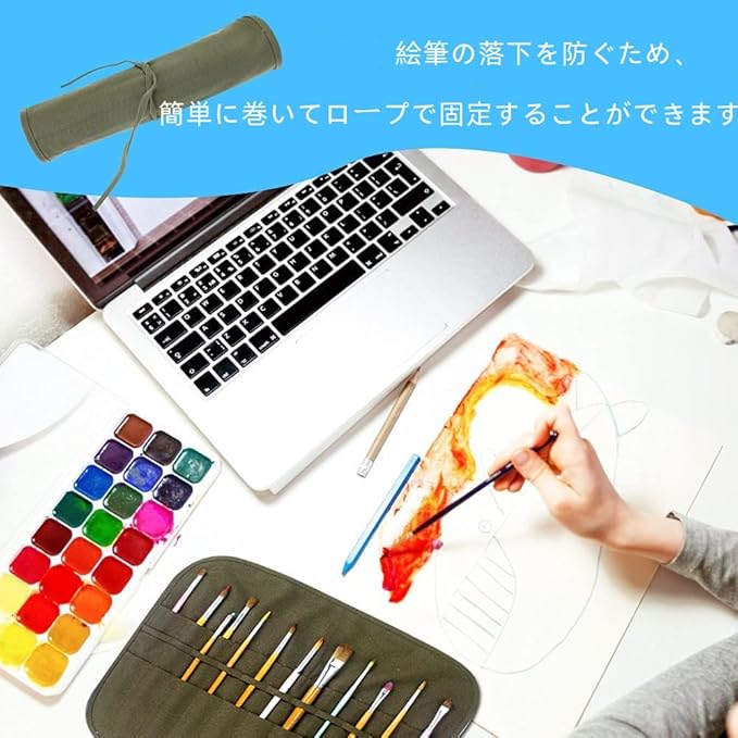 【丈夫なキャンバス地】画筆ケースは耐久性のあるキャンバス素材を使用しています。画筆ケースはとても丈夫で、汚れにくく、筆を保護することができます。様々なブラシを整理して収納することができ、屋外でのスケッチに最適なツールです。