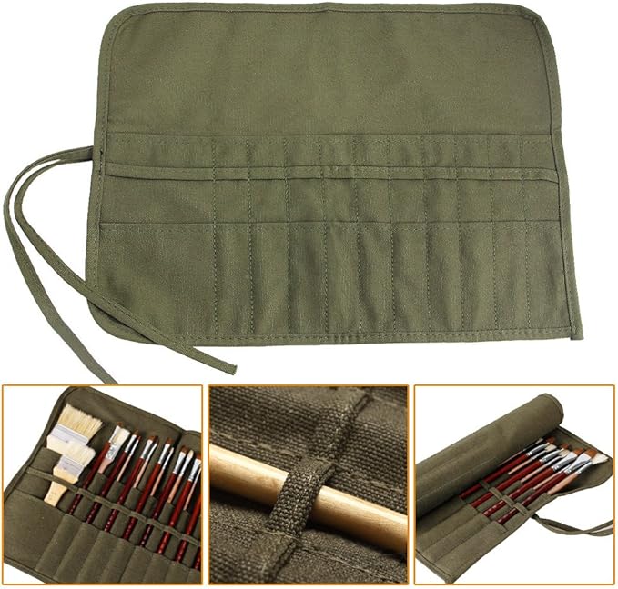 COOLBOTANG 筆ケース 筆入れ キャンバス画筆ケース ロール ペン ケース 道具入れ ペイントブラシバッグ 22スロット 画筆ホルダー 油絵筆 水彩筆用 筆収納 巻き ペン ケース 22スロット | oioioichan